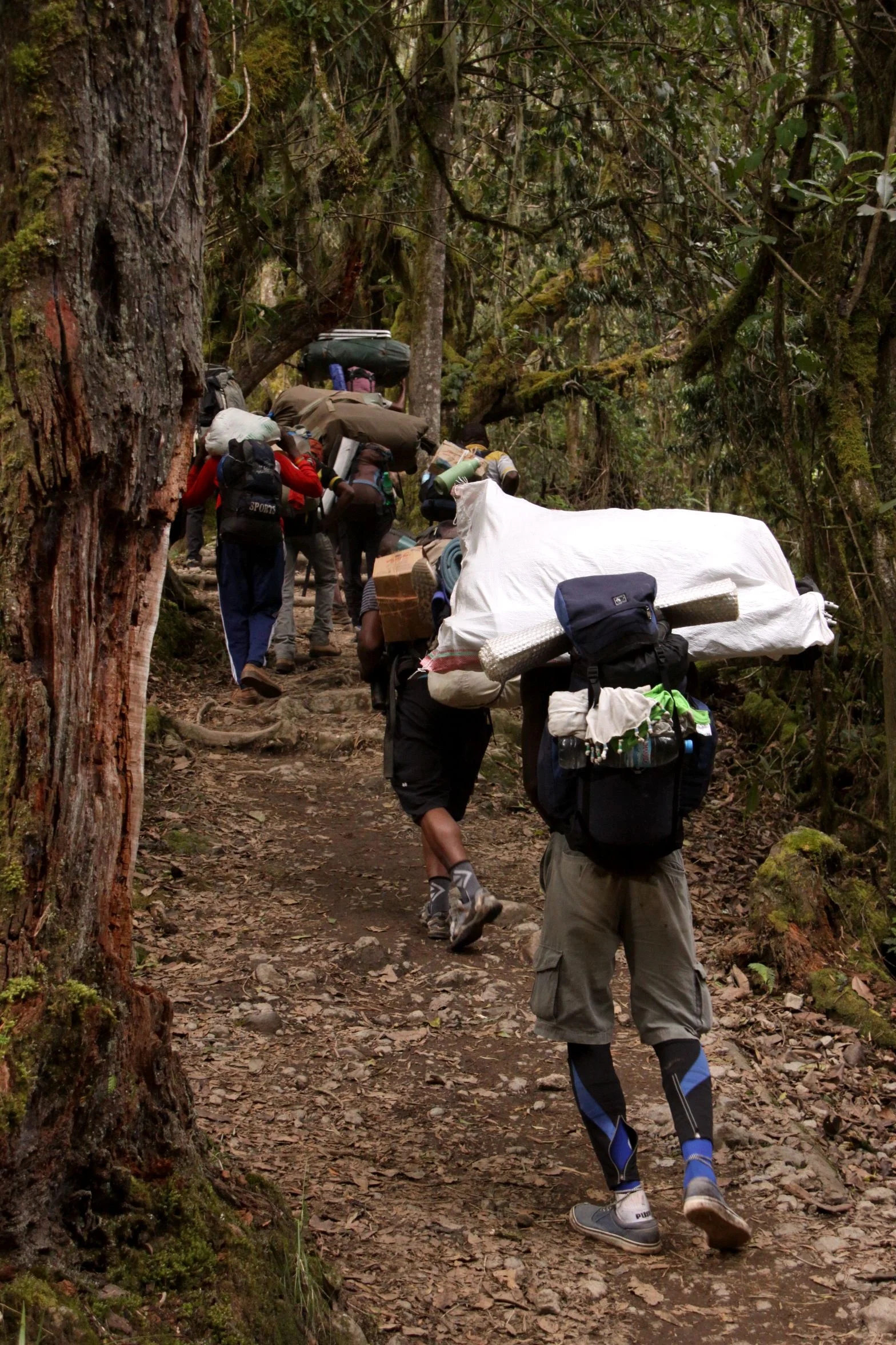 Porters are hired depending on the weight of your gear. No porter is allowed to carry more than around 50 lbs. 50lb! Rome's packing earned us an extra porter.