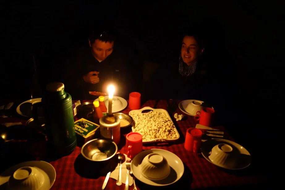 Getting up in the middle of the night to climb seemed in and of itself romantic. We were just giving ourselves time to make it back down to a reasonable altitude by nightfall. But on the big guns like Everest and K2, they get up at this hour because late morning and early afternoon is your only window to reach the summit. If you get there too late, the weather will most likely be a blizzard, and you won't make it back alive. So I kind of pretended this was why we were making a “push for the summit” at such an hour. Our window to summit was small, danger imminent, eat your porridge.