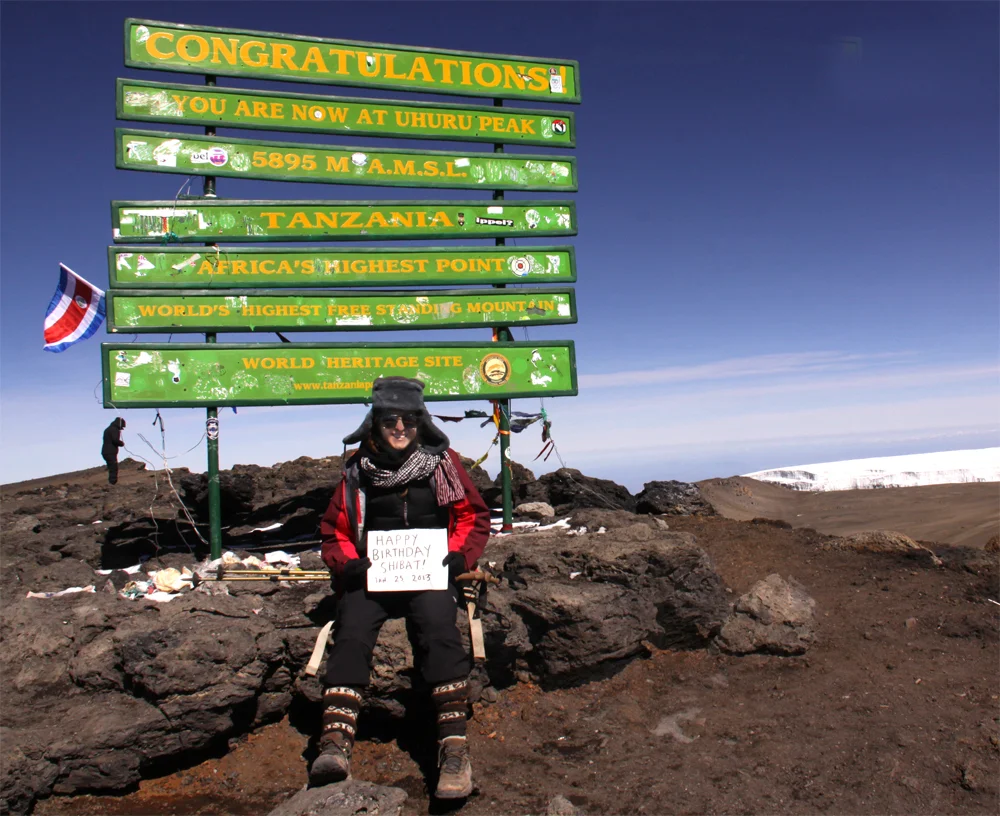 The rim came to an abrupt end, and there it was, the sign at the top of Africa!